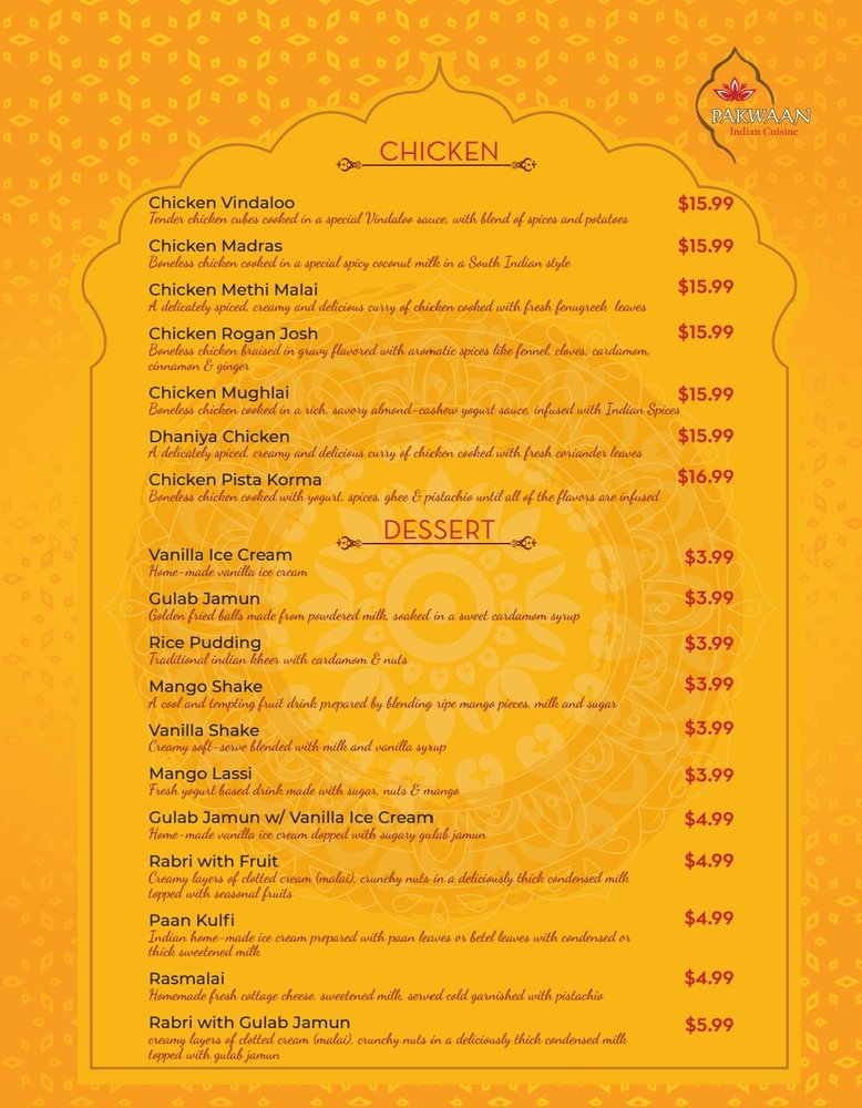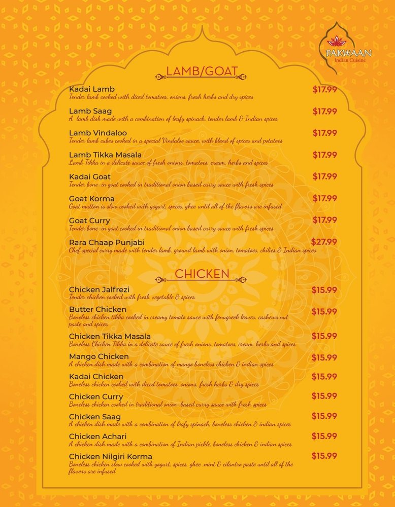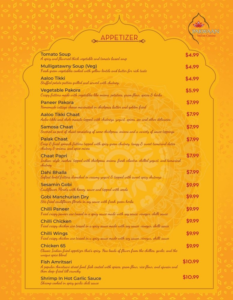 Pakwaan Indian Cuisine offers a classy dining experience, suitable for families with children and even furry friends. Located in Gainesville, VA, their menu boasts flavorful Indian delicacies. Starting with appetizers like Aaloo Tikki Chaat and Chicken 65, the options are abundant. The lunch boxes, whether chicken or veg, provide a satisfying meal with chef-selected curries, lentils, rice, and naan. Customers rave about the goat biryani and butter paneer. The ambiance is described as inviting, with attentive and friendly service. Diners appreciate the option to customize spice levels and enjoy the fresh and delicious dishes. Regulars praise the Mulligatawny soup and naan varieties, highlighting the excellent service and casual classy vibe of Pakwaan Indian Cuisine. Don't miss out on the chance to explore the diverse flavors of Indian cuisine at this highly recommended restaurant.
